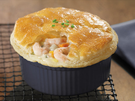 Ingrédients: fumet de poisson, farine, shortening végétal, eau, morue, pétoncles, crevettes, crabes, pommes de terre, carottes, poireaux, petits pois, ail, persil, œufs, sel et poivre.